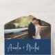 Navy Blue Handwriting Typography Photo Wedding All In One Invitation