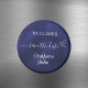 A Save the Date magnet for your wedding. A navy blue background, white text. The blue colour is uneven. Decorated with a small heart. Personalize and add your names and wedding date.