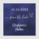 A Save the Date magnet for your wedding guests. A navy blue background, white text. The blue colour is uneven. Decorated with a small heart. Personalize and add your names and wedding date.