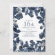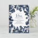 Navy blue/indigo leaves and floral on white 16th birthday party invitation. Contact us for help with customization or matching products.
