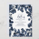 Navy blue/indigo leaves and floral on white 65th birthday party invitation. Contact us for help with customization or matching products.