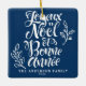 Navy Blue Joyeux Noël and Bonne Année Calligraphy Ceramic Ornament
