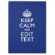Your personalized Keep Calm saying on a classy navy blue decor. A personalized Keep Calm style saying on a one of a kind gift. Humourous or whimsical try on your creative words on two editable lines of text. Remember to use CAPITAL letters for best results.