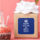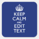 Your personalized Keep Calm saying on a bold navy blue decor. A personalized Keep Calm style saying on a one of a kind gift. Humourous or whimsical try on your creative words on two editable lines of text. Remember to use CAPITAL letters for best results.