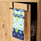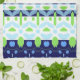 Navy blue background can be switched to any colour on this lime green, powder blue and white patterned kitchen towel, pretty gift idea.