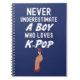 Inspire your young K-pop fan with this empowering Navy Blue Kpop Gifts notebook, featuring the powerful quote: "Never Underestimate A Boy Who Loves K-Pop." This themed, unique notebook makes a perfect motivational gift for any K-pop lover, combining a cool navy blue design with a finger heart symbol and a message of confidence perfect for kids and boys.