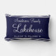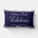 Navy Blue Lakehouse Family name Map Corinates Lum Lumbar Pillow