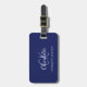 Navy blue faux leather print as background. Personalize and add your first name, monogram letters and full name on the front. Your contact information on the back. White and blue text.