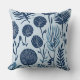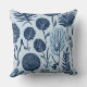 Navy Blue Light Blue Botanical Floral Print Throw Pillow