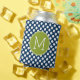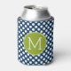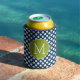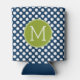 Navy Blue & Lime Green Polka Dots Custom Monogram Can Cooler