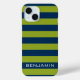 Navy Blue Lime Green Rugby Stripes Custom Name Case-Mate iPhone Case