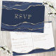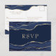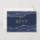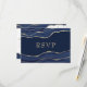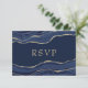Navy Blue Marble Agate Gold Glitter Wedding RSVP Card