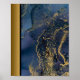 Navy Blue Marble Stone / Black Gold Border Art Poster