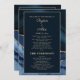Elegant, modern navy blue and gold marble agate wedding program/bridal party card for your guests at the wedding ceremony. Includes a welcome to your guests, names of the bride and groom and their wedding date, and the schedule of the ceremony on the front of the card. The back of the card includes the names of parents and bridal party.