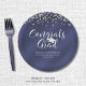 Navy Blue Metallic CONGRATS GRAD Confetti Paper Plate