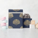 Navy Blue Metallic Gold Sea Shells Mermaid Wrapping Paper