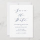 Announce your wedding date to family and friend with this customizable save the date card. It features minimalist script and simple typography with stripes pattern for the back. The colours on this save the date announcement are white and navy blue, perfect for any wedding theme. Personalize by adding name, date, venue and other event details.