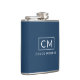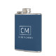 Navy Blue Minimalist Modern Monogram Name Hip Flask