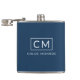 Elevate your style with this sleek flask featuring initials enclosed in a simple frame. Below, your name is displayed in a clean, minimalistic white font on a navy blue background. This design embodies a professional, basic, and elegant aesthetic, making it the perfect accessory for any modern individual. Ideal for business settings or personal use, this monogrammed flask combines functionality with minimalist elegance. Make a statement with this stylish, contemporary piece that showcases your unique identity!