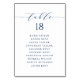 Customizable table number seating plan. It features a navy blue whimsical script and classic typography. Personalize by adding your own details. This minimalist table seating plan is perfect for weddings, baby showers, bridal showers, birthdays, and so much more.