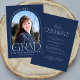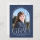 This navy blue simple minimalist graduation card serves as both a graduation announcement and grad party invitation, and features a photo, arch frame and elegant modern typography.