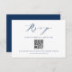 Navy Blue Modern Minimalist Script Wedding QR Code RSVP Card
