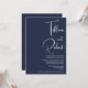 Announce your special day with the Navy Blue Modern Minimalist Wedding Invitation. Featuring a rich navy blue background with sleek white text, this elegant design presents essential details—names, date, and venue—on the front. The back showcases the couple's initials and wedding date, adding a personal and sophisticated touch. Perfect for modern, elegant, or formal weddings, this invitation combines simplicity with timeless charm, creating a polished and memorable keepsake for your guests.