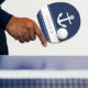 Navy Blue Modern Nautical Anchor Custom Name Ping Pong Paddle