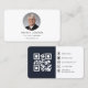 Navy Blue Modern Photo with QR Code Social Media Business Card