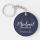 Ajoutez une touche personnelle à votre mariage avec un porte - clé de toiletteurs personnalisé. Ce porte - clé présente le nom des groomsmen personnalisées dans le style de police de script moderne blanc et monogramme dans le style de police de script moderne bleu marine clair comme arrière - plan avec titre et date de mariage en blanc moderne sans serif style de police sur arrière - plan bleu marine. Aussi parfait pour le meilleur homme, père de la mariée et plus.