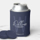 Navy Blue Modern Script Personalized Groomsmen Can Cooler