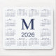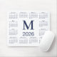 Navy Blue Monogram 2026 Calendar on White Mouse Pad