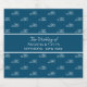 Elegant and timeless, using your monogram as a pattern. A classic navy blue background. Personalize and add your monogram letters. Your family name's initial in the middle with a capital letter. Add your names and the wedding date. White text.