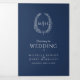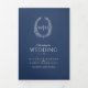 Navy blue monogram wreath story dedication wedding Tri-Fold programme