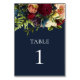 Navy Blue Moody Floral Burgundy Wedding Table Number