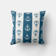 Classic dark navy blue and white nautical anchor pattern decorative throw pillow with vintage wide stripes. Fully customizable, add your own text or photo for a truly unique home decor item, perfect for a nursery.