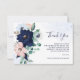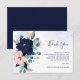 Navy Blue Nautical Flowers Wedding Thank You Card