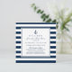 Modern baby shower invitation featuring navy and white stripes and anchor. This will be perfect for nautical themed 'It's a boy' baby showers. Other colours and matching items are available.