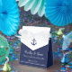 Navy blue nautical wedding favour box (tent favour box with white ribbon) with anchor and changeable text - you can add bride's and groom's name, change text 'Thank you for sharing this special day with us' and wedding date.