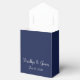 Navy blue nautical wedding favour boxes (tent favour box with white ribbon) with anchor and customizable text - you can add bride's and groom's name and wedding date.