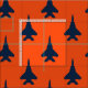 Navy Blue on Orange Eagle Fighter Jet Pattern Fabric