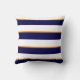 Navy Blue, Orange and Large White Stripes Throw Pillow