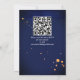 Orange and white roses sage eucalyptus greenery navy blue background gold geometrical frame floral wedding Save the Date card with QR wedding website code at the back, if not needed - delete those fields from drop down menu.