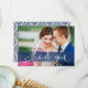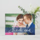 Navy Blue Overlay Script Wedding Photo Thank You Card