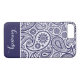 Navy Blue Paisley Floral Pattern Monogram Name Case-Mate iPhone Case