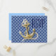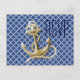 Navy Blue pattern anchor nautical wedding rsvp Invitation Postcard