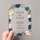 Navy Blue Peach Floral Wedding Save the Date Acrylic Invitations