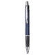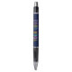 Personalize our pen with your business logo, tagline, website, business address, or other custom text. It's a ballpoint pen with black ink and a rubber grip. Designed in navy blue and other colours (all colours are customizable). Made in USA. Small quantity order (six minimum) and no setup fee.