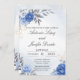 Navy blue peony rose wedding invitation card with golden leaves and golden frames, invitación azul para boda
