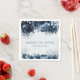 A navy blue and silver only (no green or other colours) wedding napkin featuring watercolor-painted navy blue and dusty blue peonies and florals with silver blue eucalyptus greenery along the top and bottom with your first names in a new modern uppercase font centred and your wedding date beneath. A classic navy blue wedding napkin.